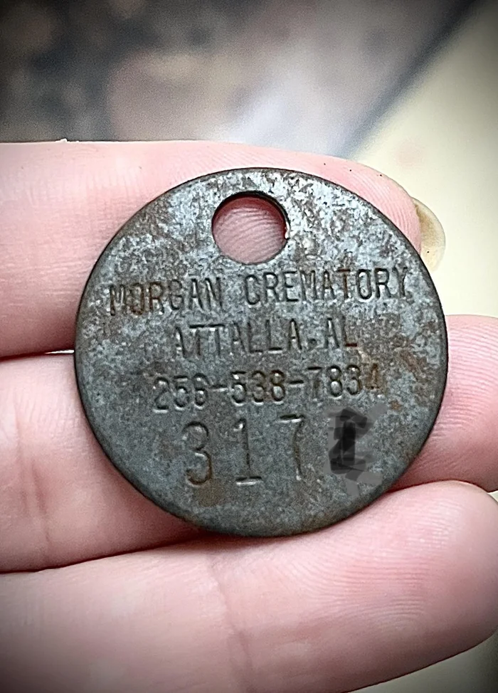 FB - это "Feuerbestattung" Minden, то есть крематорий города Минден. Судя по всему, это керамический диск-маркер, который по порядковому номеру показывает, чей был прах. Похоже, чей-то прах развеяли над морем, а диск остался плавать. Обычно они металлические.