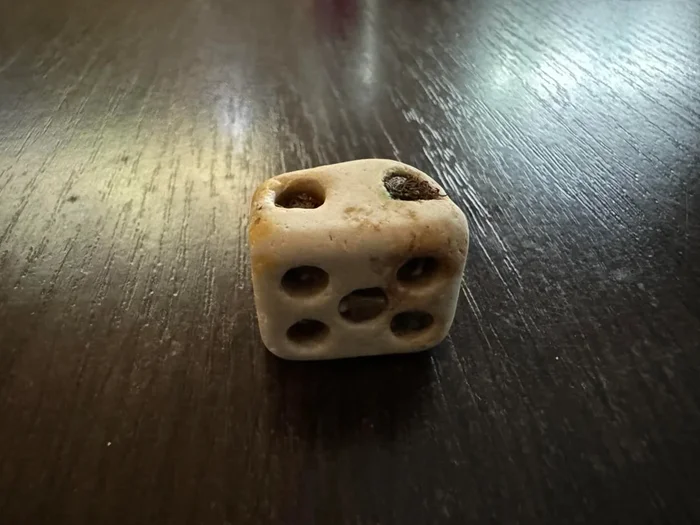 Да что ж они все в море находят? И это не кубик, это керамический клеммник (соединитель кабелей) обточился водой до вида кубика.