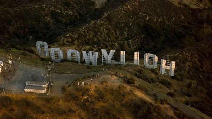 11. Надпись «Голливуд» в Лос-Анджелесе, США, вид сзади и сверху
