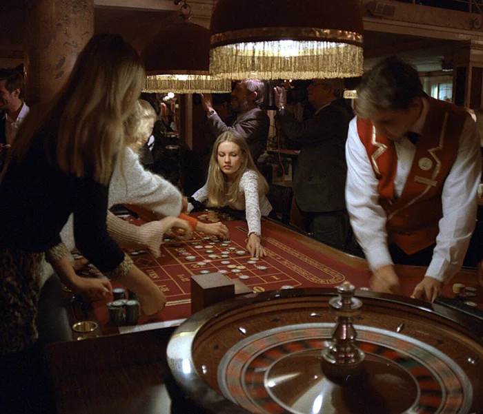 Участницы конкурса Петербургские красавицы, получив в подарок от казино игровые фишки, играют в рулетку. Санкт Петербург, 1997 год.