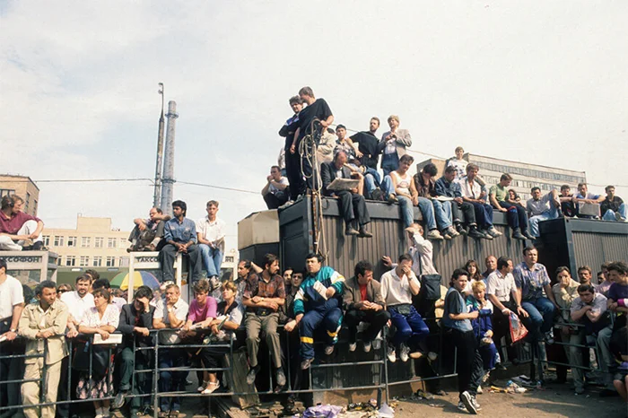 Обманутые вкладчики "МММ" возле офиса компании на Варшавском шоссе, 1994 год.