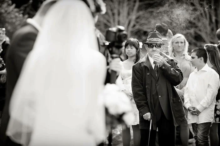 9. «Мой дедушка на моей свадьбе, выглядит прямо как босс мафии»