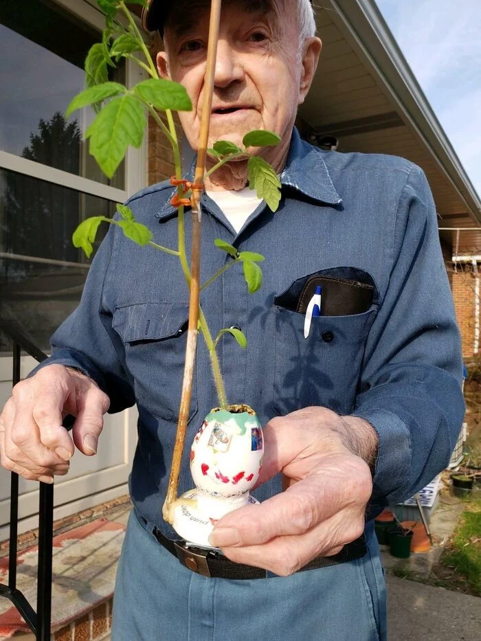 14. «Мой дедушка был очень рад показать мне, что он вырастил помидор в яичной скорлупе»