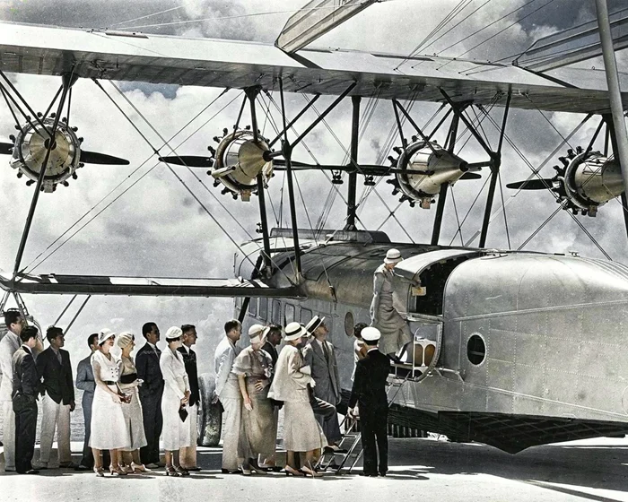 Состоятельные пассажиры садятся в самолёт Sikorsky S-30. США, 1932 год.