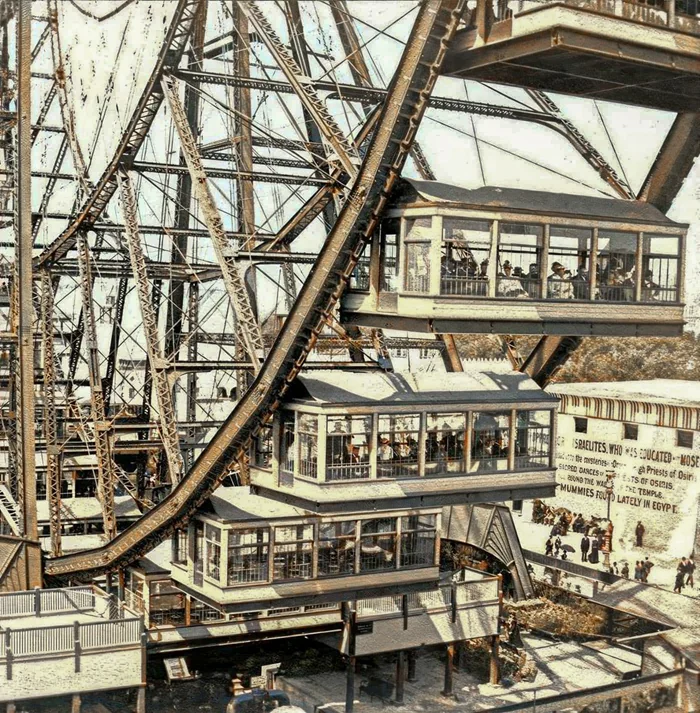 Первое в мире колесо обозрения на Всемирной выставке в Чикаго, 1893 год.
