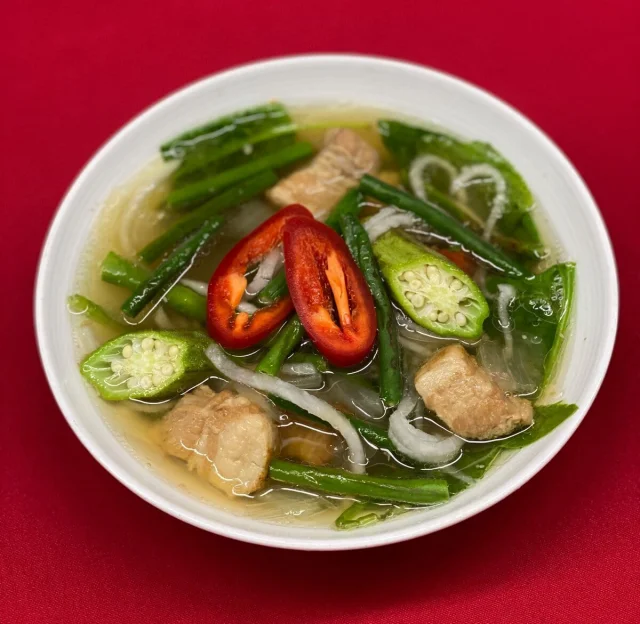 Филиппинский суп или рагу, характеризуется кислым и пикантным вкусом, которого удаётся добиться за счёт использования незрелого манго или рисового уксуса. Подаётся вместе с рисом.