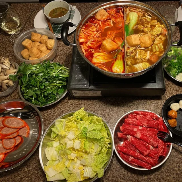 Традиционное китайское блюдо. Представляет собой кипящий (или очень горячий бульон), который подают к столу вместе с различными добавками. Предназначено для больших компаний. Является азиатской альтернативой шведскому столу.