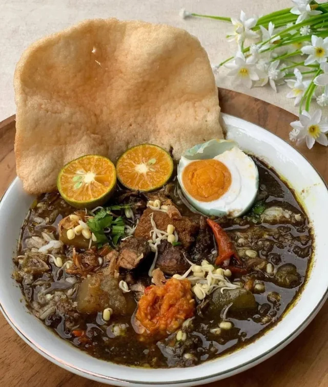 Этот ароматный суп обычно готовят из тушёной говядины и других традиционных индонезийских ингредиентов, таких как листья лайма, лемонграсс, имбирь и перец чили. Однако ключевым компонентом является индонезийский чёрный орех.