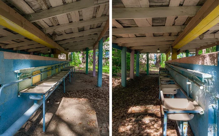 Лагерь всё же заброшен и не обошлось без пары неуместных надписей на стенах, но в остальном — полная аутентичность минувшей эпохи.