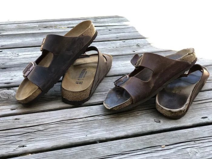 14. Слева новые шлёпанцы, справа уже порядком поношенные