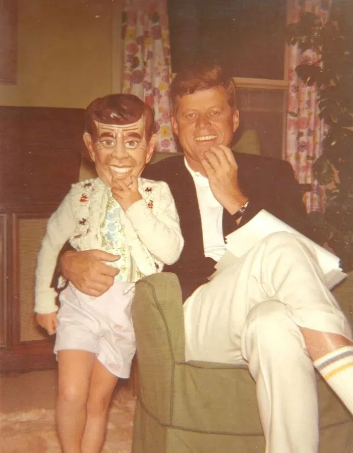2. Кеннеди с дочерью Кэролайн в маске Кеннеди, 1962 год