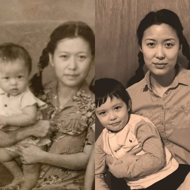 6. Магия генетики: справа - моя бабушка с папой на руках, а слева - я с сыном, фотографии сделаны с разницей в 63 года!