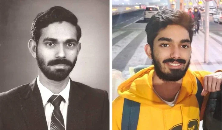 12. Я и мой папа. 1982 и 2021 годы. Обоим по 20 лет, разница 39 лет