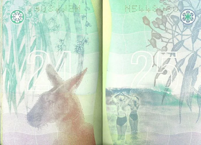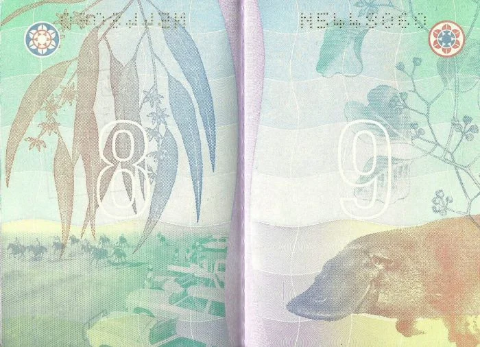 Австралийский паспорт красиво, но предсказуемо содержит на своих страницах кенгуру и утконосов