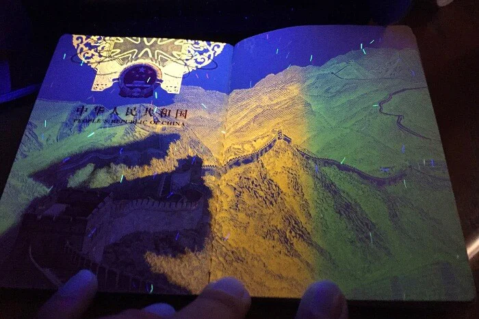 Паспорт граждан Китая тоже преображается под ультрафиолетовыми лучами