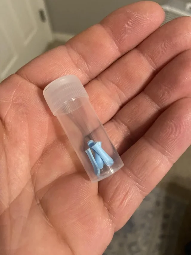 «Маленькие синие штучки в прозрачном контейнере. Найдены в спальне. Я ничем подобным не пользуюсь»