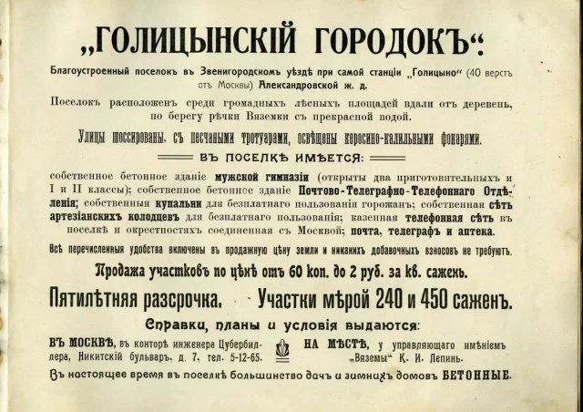 Перенесемся на столетие назад и посмотрим, какая в те годы была реклама коттеджных поселков. Их же приобретали без интернета, соцсетй, а только благодаря журналам.