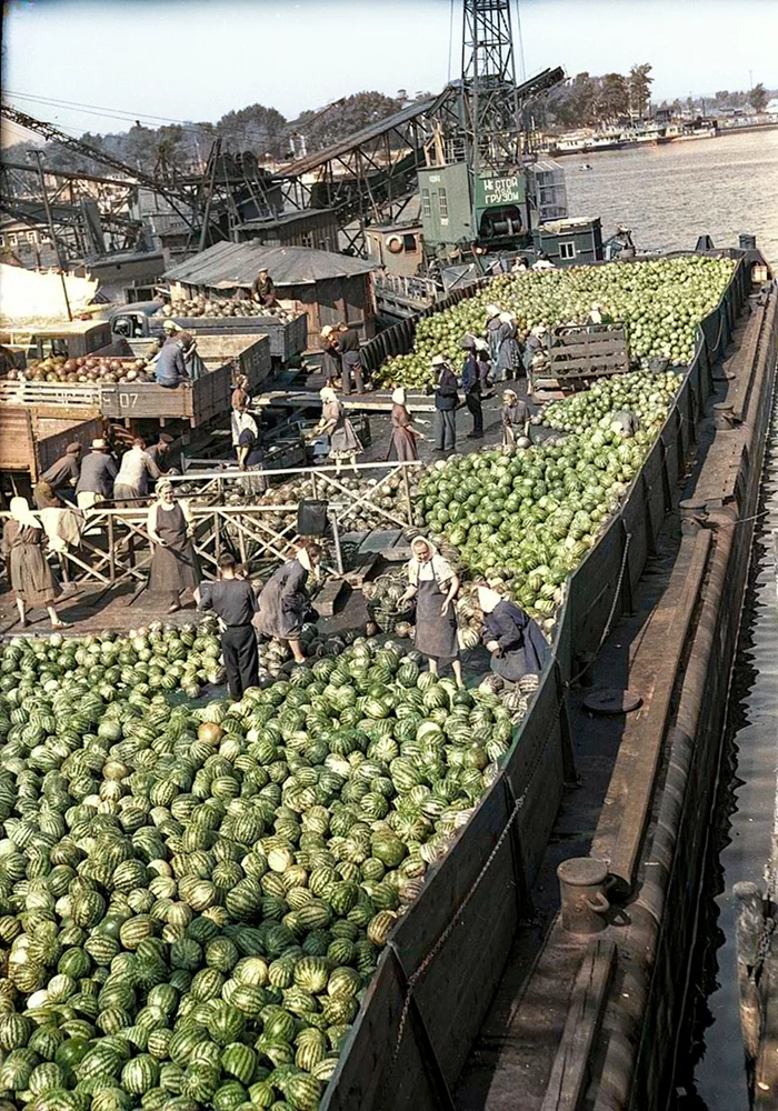 Арбузы из Херсона. Киев, речной порт, 1958 год.