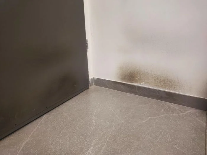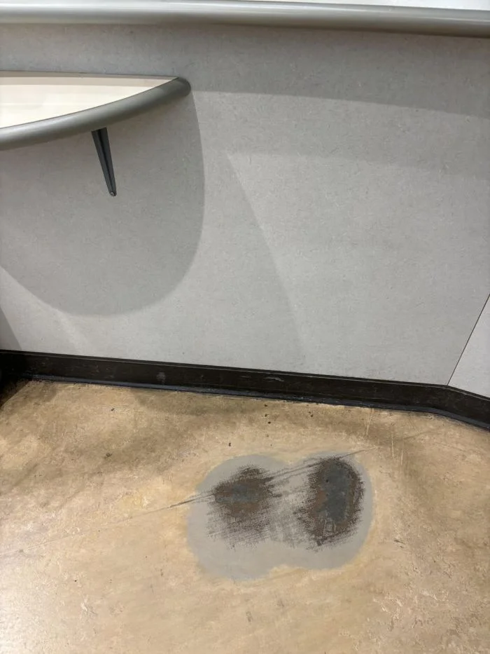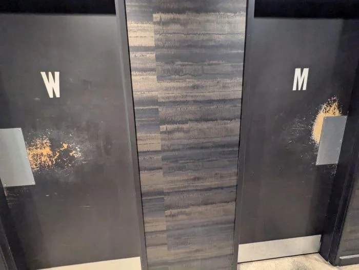 На этом фото видны следы, оставленные мужчинами и женщинами, открывающими двери в туалет