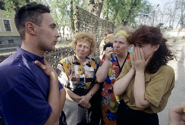 Солдатские матери встречают освобождённых из плена российских солдат, 1990-е годы.