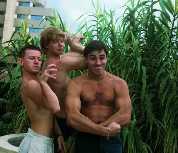 Участники группы «Иванушки International» позируют на отдыхе, 1990-е годы.