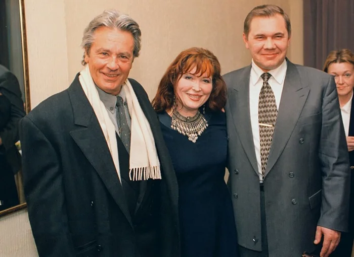 Ален Делон и Александр Лебедь с супругой Инной во время предвыборной кампании на пост губернатора Красноярского края, 1998 год.