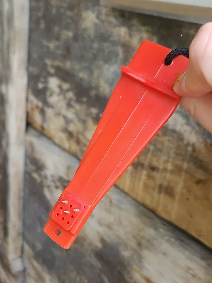 Это сломанный компостер для спортивного ориентирования. Он устанавливается на контрольной точке, и команда должна, добравшись до нее, пробить им специальную карточку.