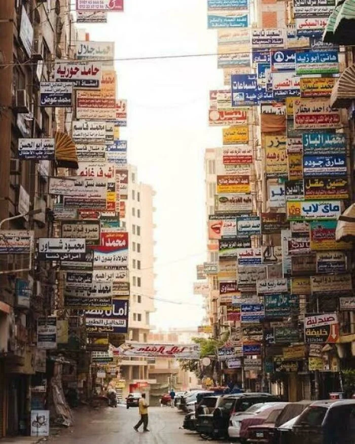 13. Улица в Мансуре, Египет, с вывесками врачебных кабинетов