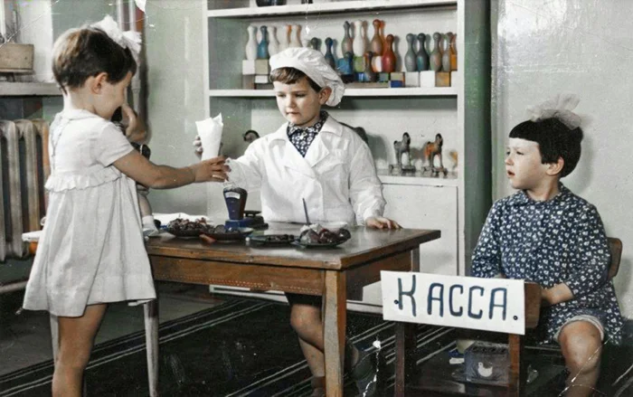 Дети в детском саду играют в магазин. Ярославль, 1965 год.