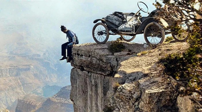 Автомобилист на краю Гранд–Каньона, США, 1914 год.