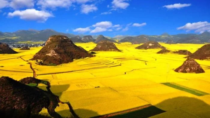 12. Поля рапса в китайской провинции Юньнань весной превращаются в яркое море цветов