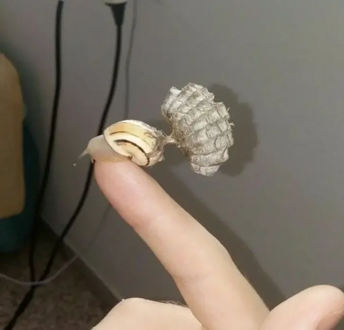 13. Улитка с маленьким осиным гнездом на раковине — редкая находка