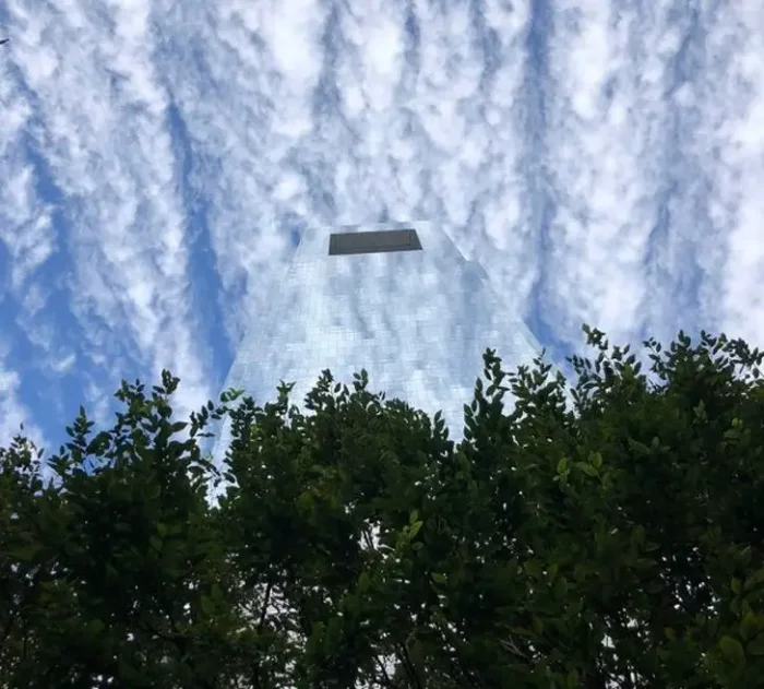 58-этажное здание высотой 296,7 метров настолько идеально отражает небо, что его верхняя часть кажется невидимой.