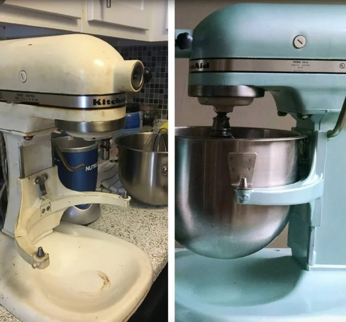 24. "Нашёл этот миксер KitchenAid 70-х годов за 35 долларов, перекрасил его, и теперь он выглядит как новенький"