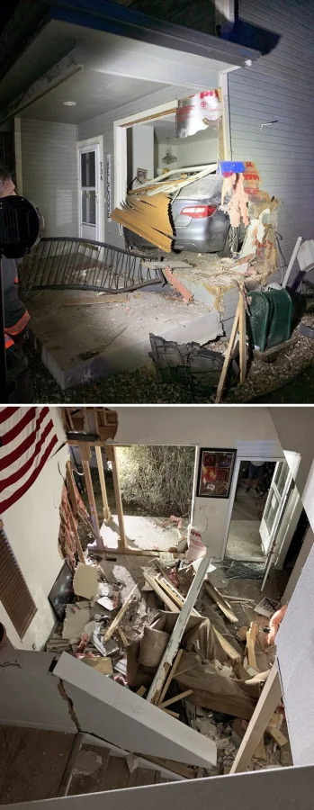 6. «Пьяный сосед перепутал свой дом с моим и влетел в него на скорости 130 км/ч.»