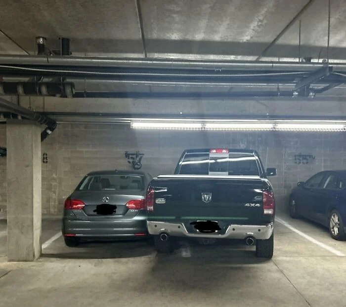 15. «Вот так паркуется моя соседка. И нет, это не временно, она уже три дня так стоит.»