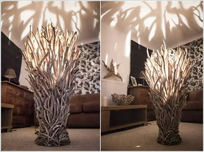 14. Лампа, напоминающая железный трон, отбрасывает атмосферные тени, создавая уникальное освещение.