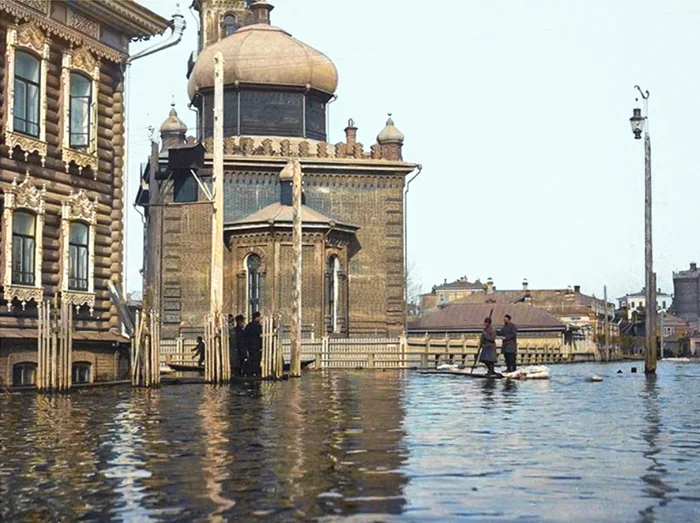 Наводнение в Томске. Вид от Базарной площади на север, 1916 год.