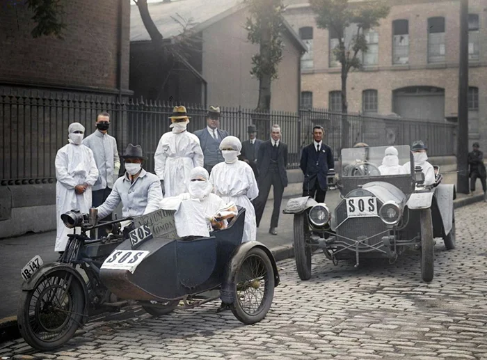 Медсестры выезжают к больным во время эпидемии, Апрель 1919, Сидней, Австралия.