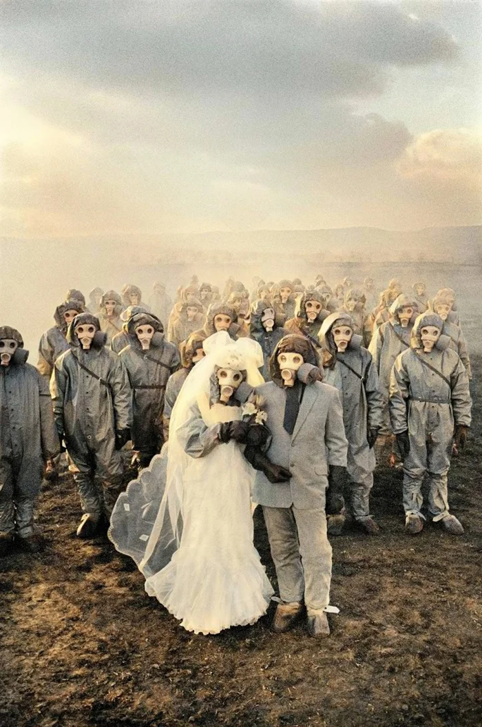 Необычный фотосет был организован фотографом Анатолием Ждановым во время службы в ГДР. По замыслу автора, серия кадров предупреждает о грядущей экологической катастрофе на Земле. Снимок был сделан во время его свадьбы, а командир и солдаты стали массовкой на кадре.