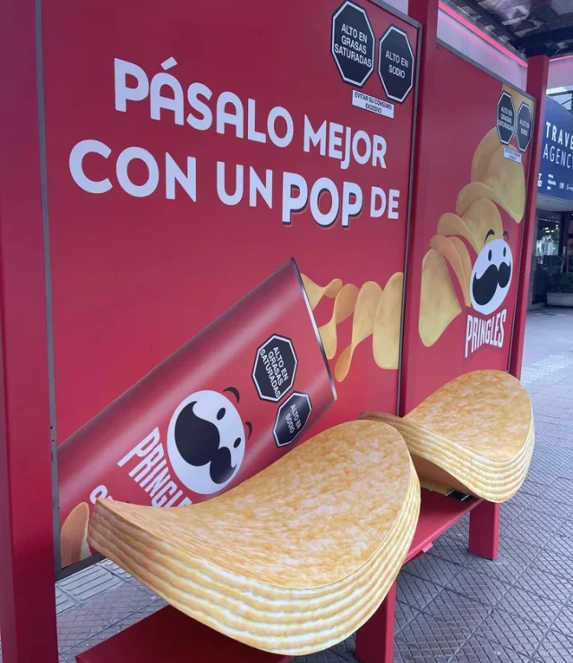 В Лиме, Перу, на остановке можно посидеть на сиденьях в форме чипсов