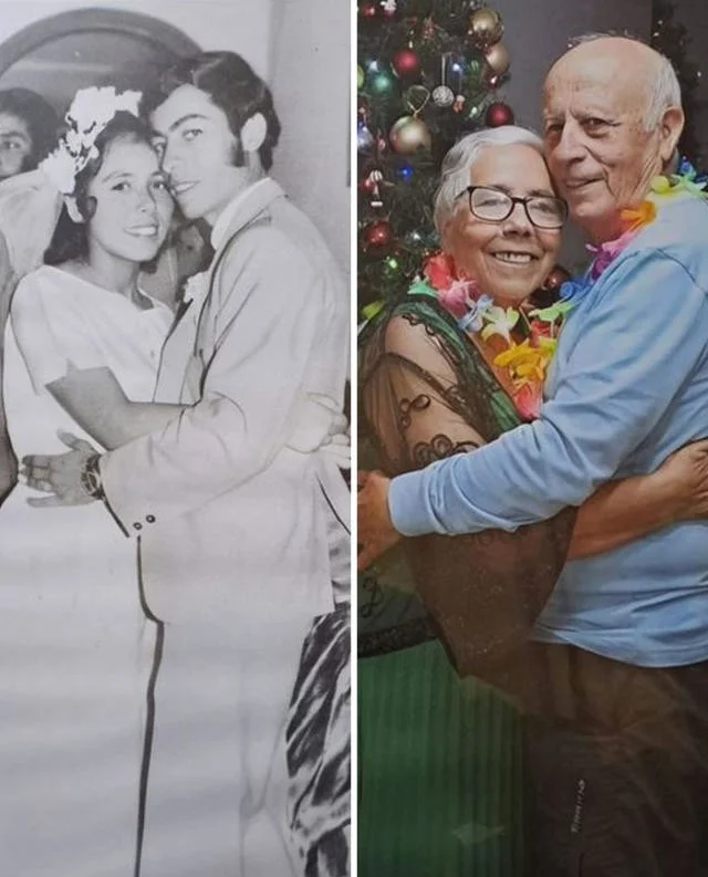 4. "Мои бабушка и дедушка в 1971 году на свадьбе и в 2021 году"