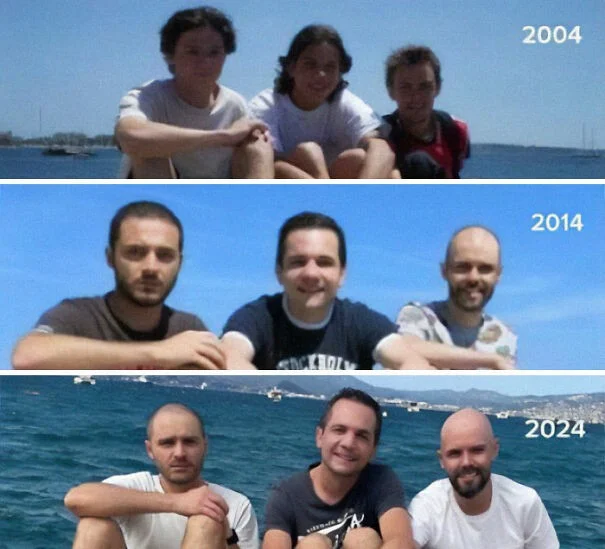 32. Каждые 10 лет друзья повторяют фотографию, сделанную в день окончания школы