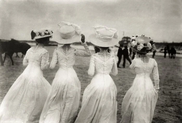 6. Женщины в белых платьях на ипподроме Нордерни, Германия, 1908 год. Фото Отто Геккеля
