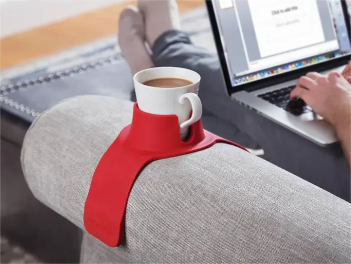 Удобно размещается на подлокотнике дивана, что позволяет держать напиток под рукой без риска пролить его.
