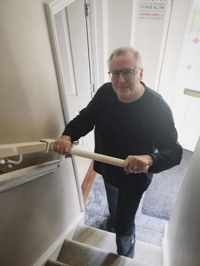 Эти регулируемые поручни сдвигаются и фиксируются на месте, что помогает людям, испытывающим трудности с передвижением.