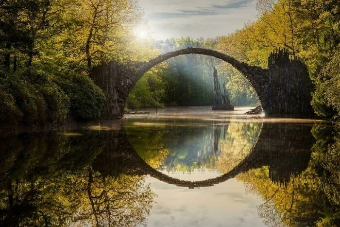 9. "Чёртов мост" (Rakotzbrücke) в Кромлау, Германия.