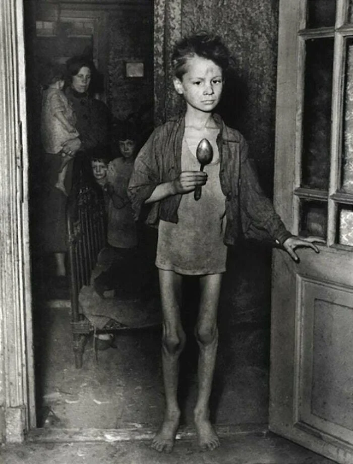 36. 9-летний мальчик из Амстердама в годы голода в Нидерландах с 1944 по 1945 годы, известного как "Зима голода". Дети тогда часто носили с собой ложки на всякий случай.
