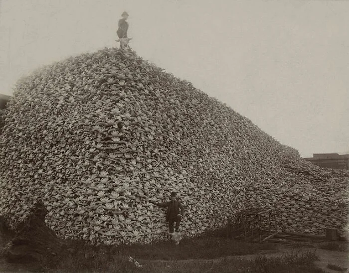 2. Гора из черепов бизонов — причина катастрофического уменьшения популяции американских бизонов с 30 миллионов до 300.