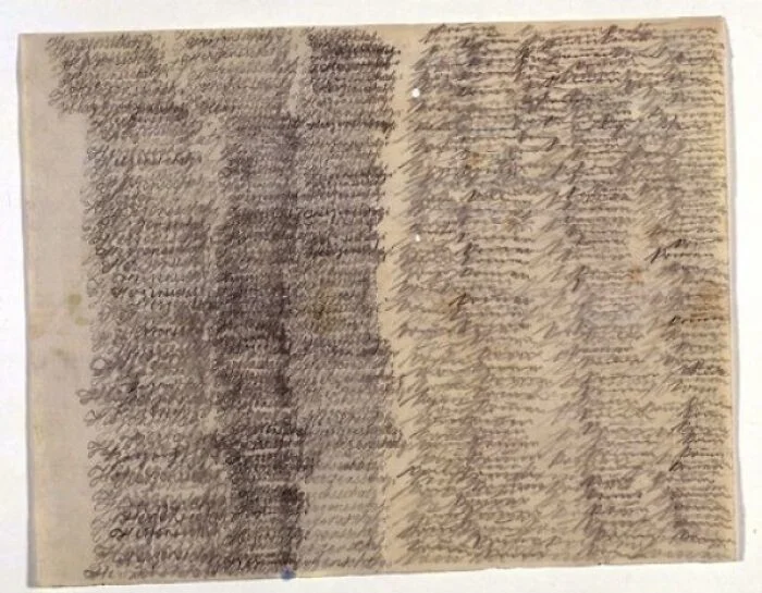 4. Письмо Эмми Хаук мужу, страдающей шизофренией. Она написала повторяющиеся слова «Herzensschatzi Komm» и «Komm Komm Komm» на листе.
